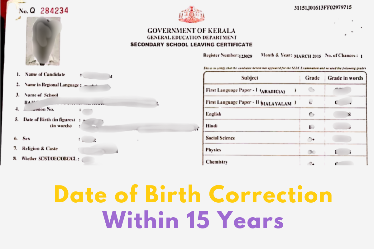 If your SSLC certificate has an incorrect Date of Birth, and 15 years have not passed since your SSLC examination, the correction process is simple and straightforward. At Clear My Doc, we prepare the application, affidavit, and challan, and ensure that the corrected certificate reaches you safely. Our expert team handles the process smoothly and professionally.